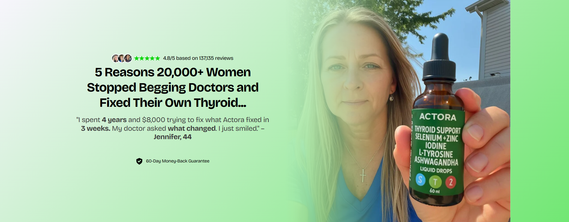 When your thyroid breaks, 100+ enzymes stop working - Actora's precise selenium-to-iodine ratio forces them back online with just one daily dropper.